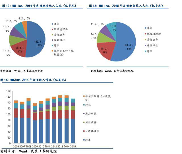 據(jù)公司2015年年報(bào)披露,于法國(guó)當(dāng)?shù)?,公司通過(guò)垃圾收集、運(yùn)輸以及處理所簽署的訂單合同預(yù)計(jì)累計(jì)收益達(dá)到了1.29億美元,在歐洲其他國(guó)家簽訂相關(guān)合同預(yù)計(jì)累計(jì)收益可達(dá)9.83億美元。